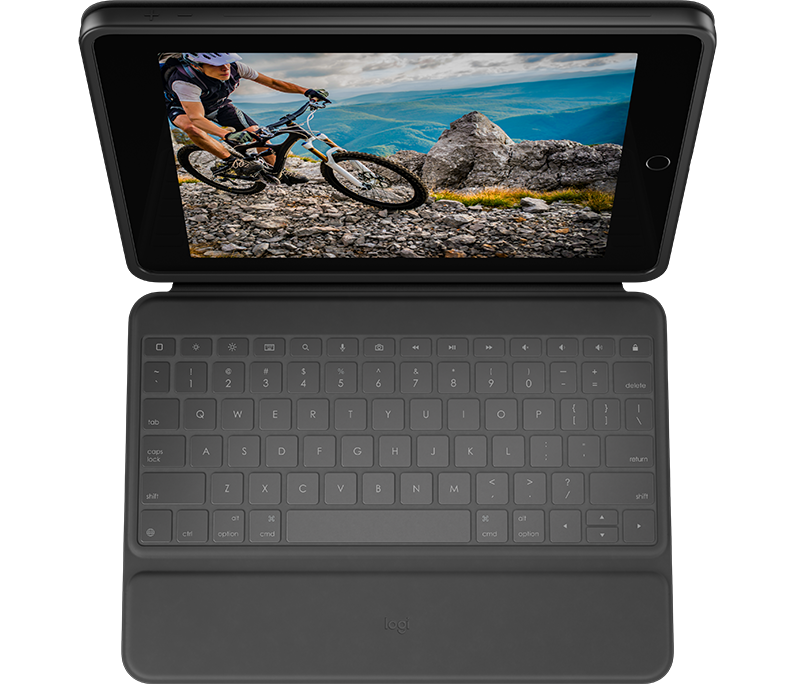 Logitech Rugged Folio – Teclado e pasta de folio – Apple Smart connector – QWERTY – Espanhol – para Apple 10.2-inch iPad (7ª geração, 8ª geração, 9ª geração)