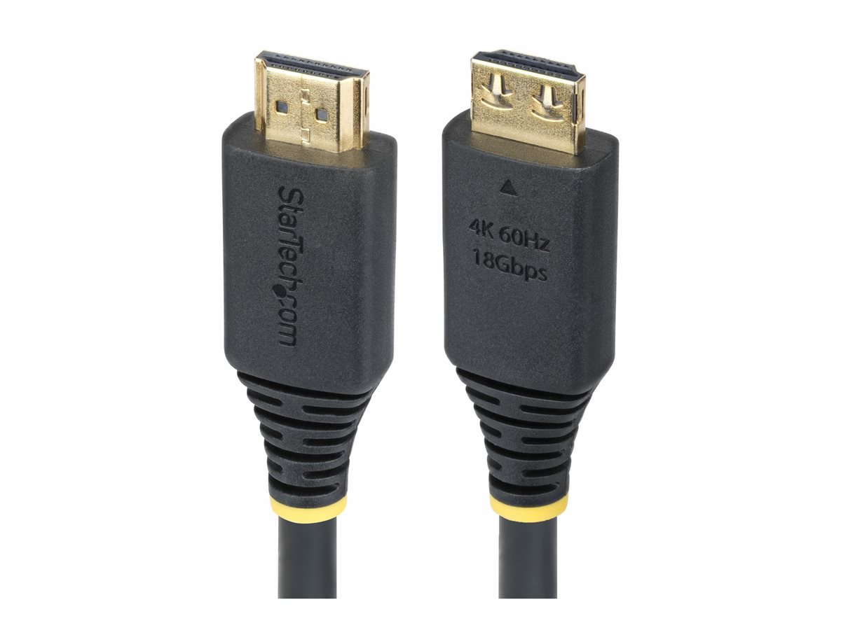 O cabo HDMI com punho da StarTech.com possui tecnologia de blindagem para integridade do sinal, garantindo ligações confiáveis para transmissão de vídeo e áudio de alta definição. Com um diâmetro externo de 6 mm, este cabo foi projetado para oferecer flexibilidade e durabilidade, com uma vida útil de 10.000 inserções e 2.000 dobras. A folha de alumínio mylar com blindagem trançada oferece proteção contra interferência eletromagnética, permitindo experiências de visualização ininterruptas. Este cabo HDMI suporta 4K a 60 Hz, 1080p a 240 Hz e 2K a 144 Hz, tornando-o adequado para monitores e televisores contemporâneos, além de garantir compatibilidade com o canal Ethernet HDMI para recursos de rede adicionais. Equipado com conectores de fixação que facilitam a inserção e remoção, este cabo também possui alívio de tensão para proteção adicional contra desgaste. Com suporte para HDR 10, Canal de Retorno de Áudio (ARC) e Controle de Eletrónica de Consumo (CEC), este cabo otimiza o desempenho de áudio e vídeo em todos os dispositivos. Em conformidade com as normas RoHS e WEEE, é livre de halogéneos, tornando-o uma escolha ambientalmente responsável para os consumidores.