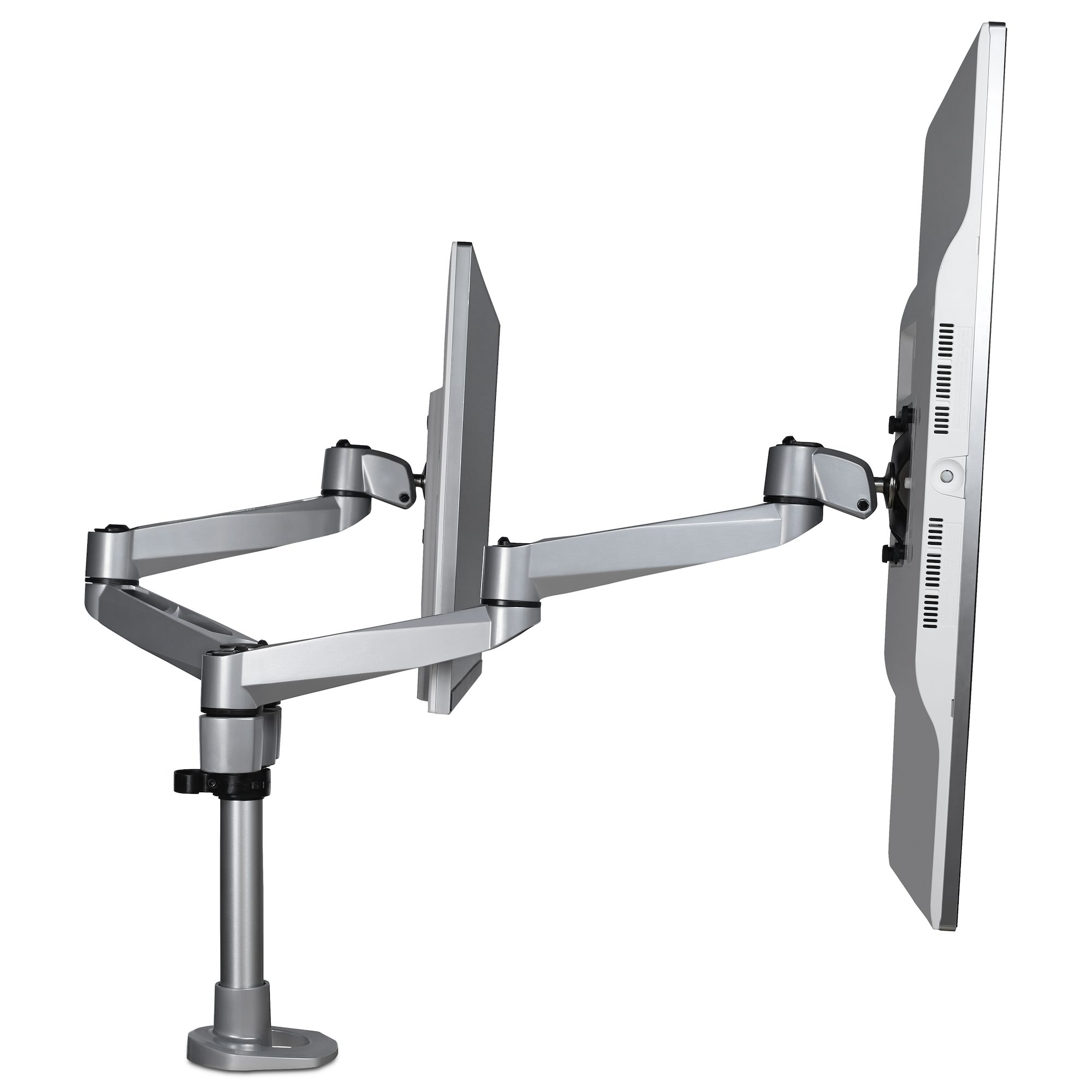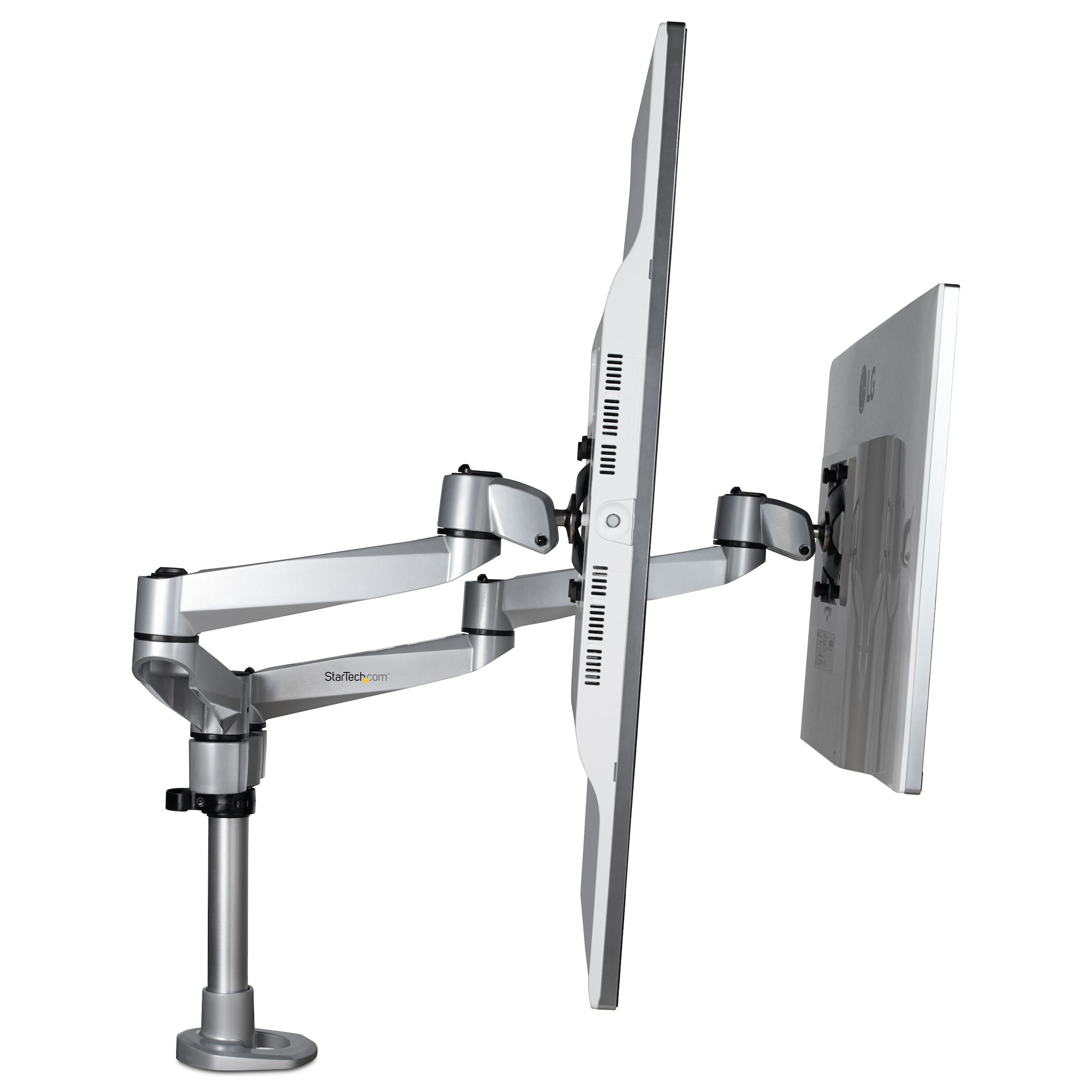 StarTech.com Desk Mount Dual Monitor Arm, Premium Articulating Monitor Arm, up to 27″ VESA Mount Displays, Height Adjustable Monitor Mount, Rotating/Swivel/Tilt, Desk Clamp/Grommet, Silver – Easy & Quick Assembly (ARMDUALPS) – Kit de montagem – braço ajus
