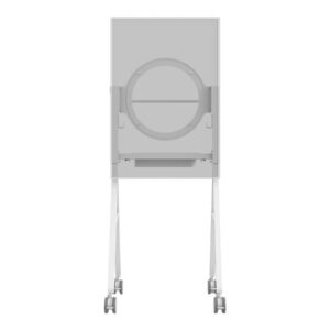 Display floor stand trolley – halo fitting for Microsoft Surface 50″ Hub 2 or 3 – VESA 350 x 350 – tilt – laptop shelf – battery bracket included – cable management – large 100mm wheels – swl 45 kg – white