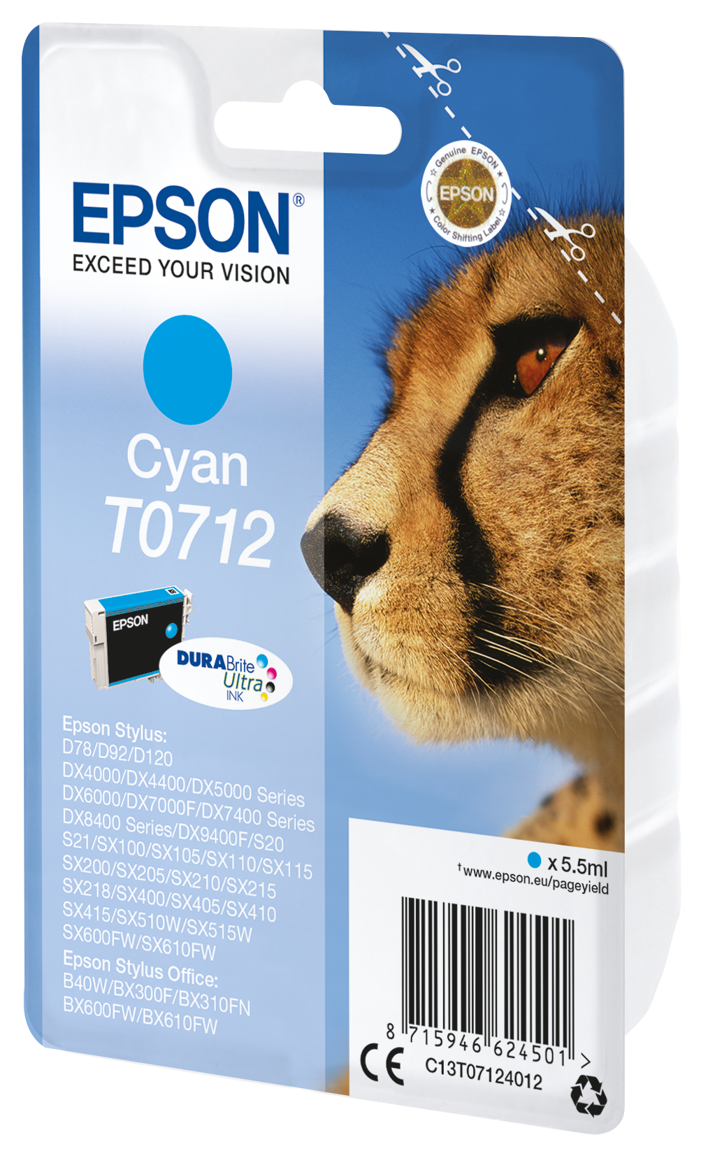 Epson T0712 – 5.5 ml – azul cyan – original – tinteiro – para Stylus DX9400, SX115, SX210, SX215, SX218, SX415, SX515, SX610, Stylus Office BX310, BX610