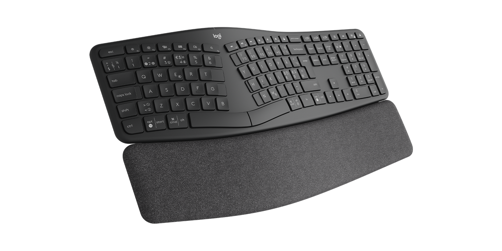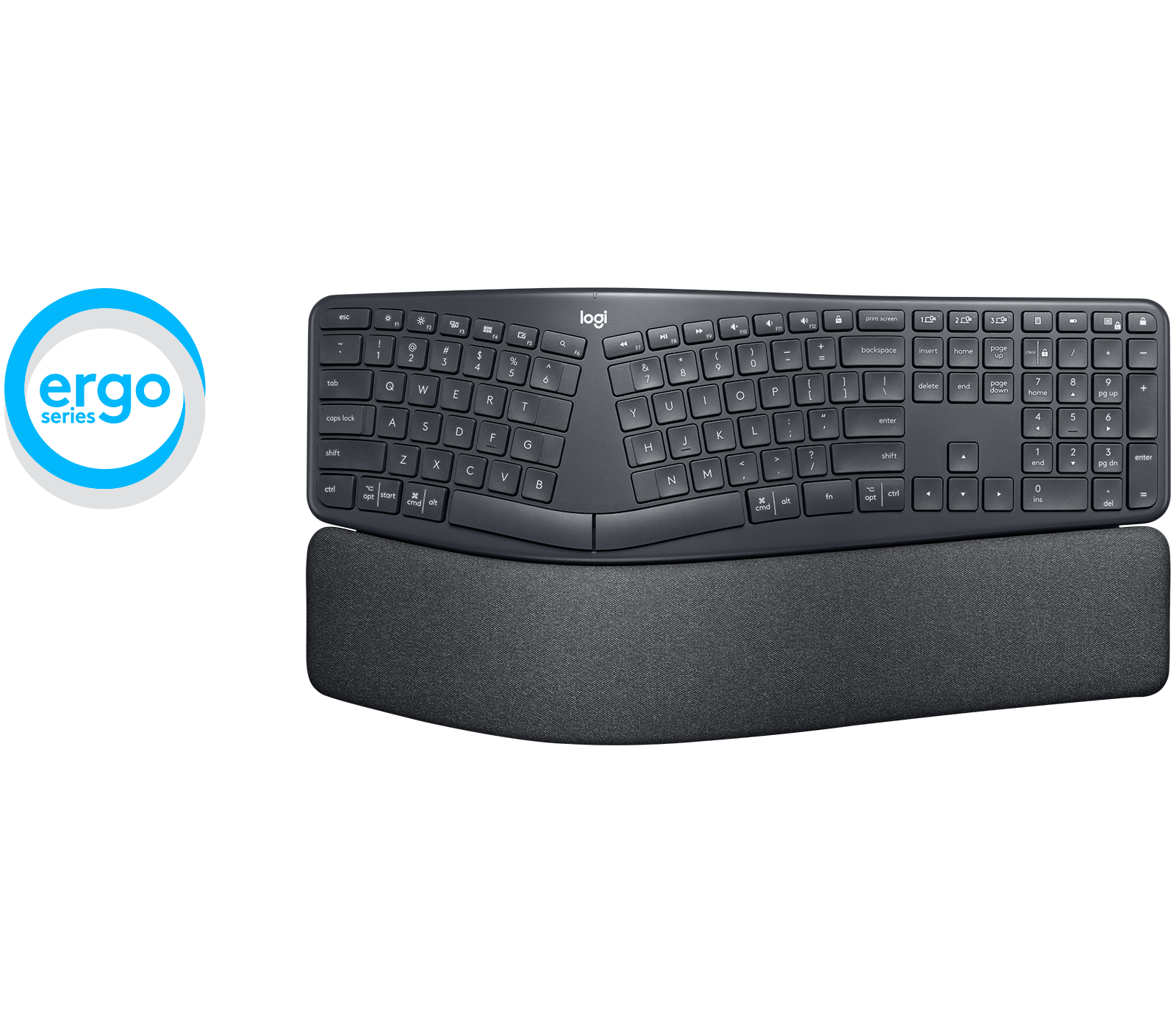 Logitech ERGO K860 – Teclado – sem fios – 2.4 GHz, Bluetooth 5.0 – AZERTY – Francês – grafite
