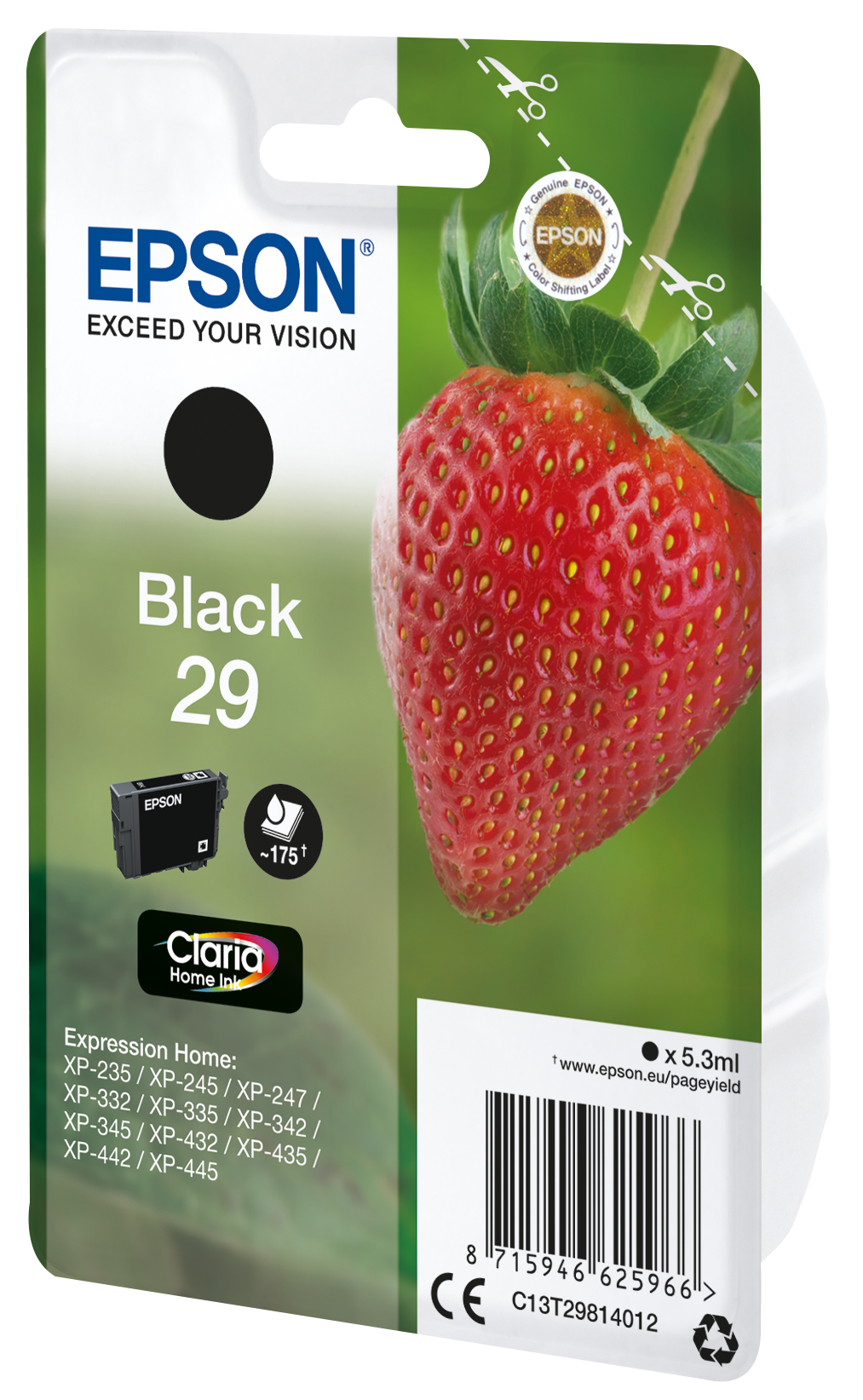 Epson 29 – 5.3 ml – preto – original – blister com RF/alarme acústico – tinteiro – para Expression Home XP-235, 245, 247, 255, 332, 335, 342, 345, 432, 435, 442, 445, 455