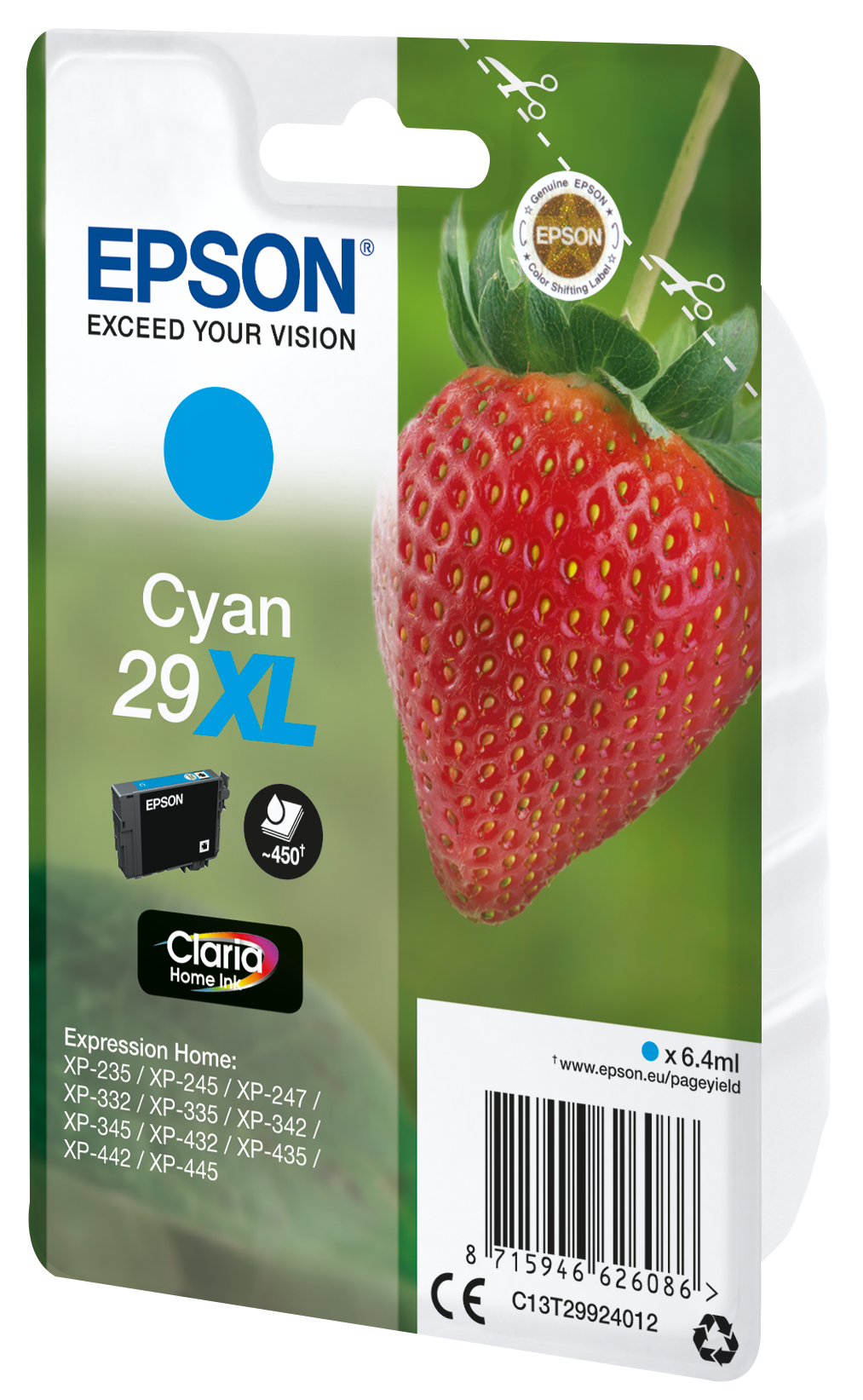 Epson 29XL – 6.4 ml – XL – azul cyan – original – blister – tinteiro – para Expression Home XP-245, 247, 255, 257, 332, 342, 345, 352, 355, 435, 442, 445, 452, 455