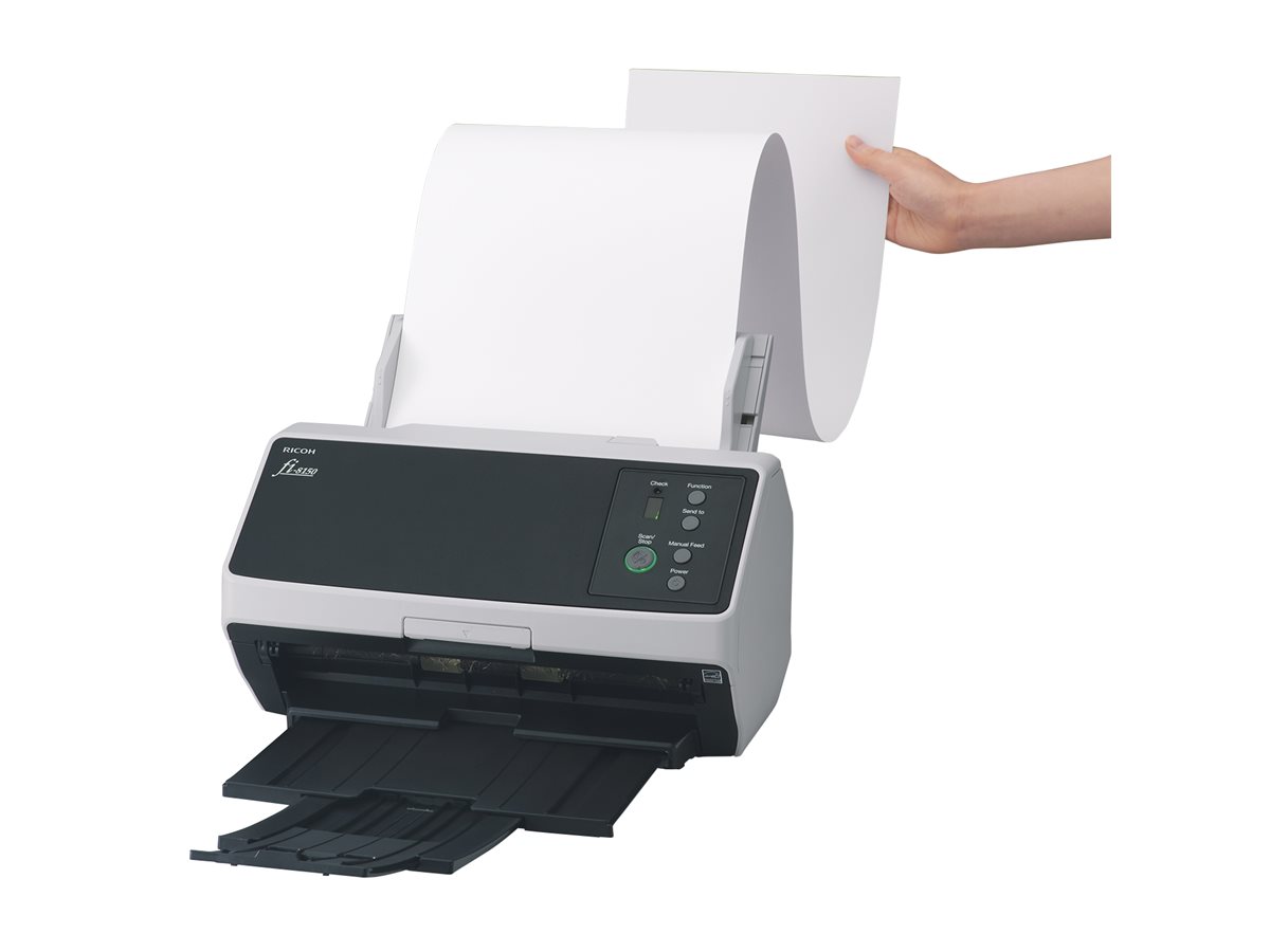 Ricoh fi-8150 – Escaneador de documento – CIS duplo – Duplex – 216 x 355.6 mm – 600 ppp x 600 ppp – até 50 ppm (mono) / até 50 ppm (cor) – ADF (100 folhas) – até 8000 varreduras por dia – USB 3.2 Gen 1, Gigabit LAN – para P/N: PA03770-0015, PA03810-0001,