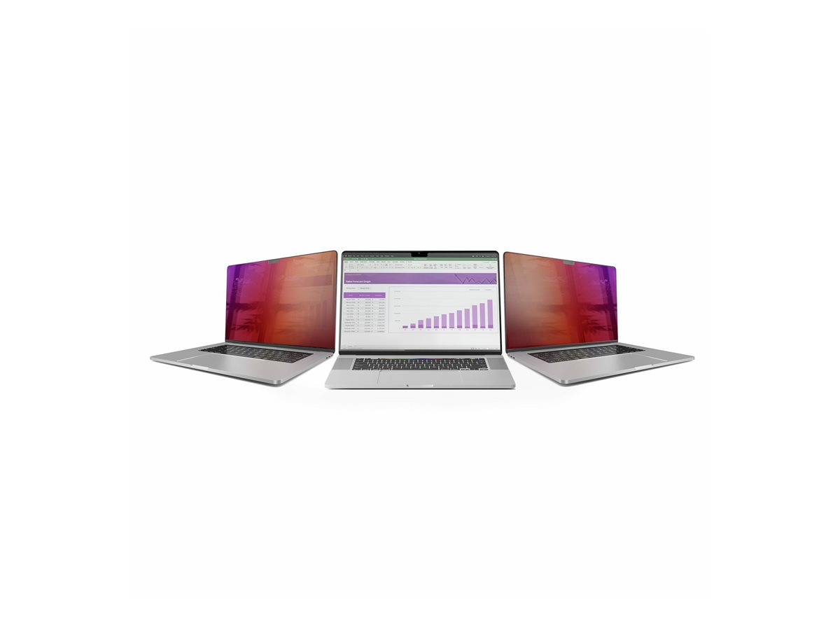 - Privacidade melhorada. O ecrã de privacidade do MacBook Pro 21/23 de 14 polegadas proporciona privacidade das vistas laterais com o seu ângulo visível de +/- 30°, garantindo que as suas informações sensíveis permanecem confidenciais.